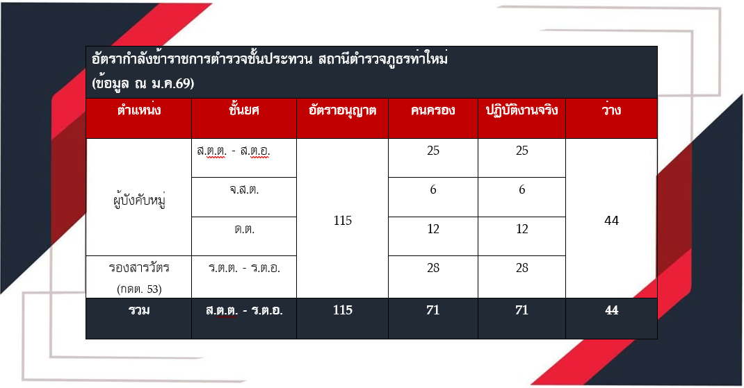 ข้อมูลอัตรากำลังสถานีตำรวจภูธรท่าใหม่