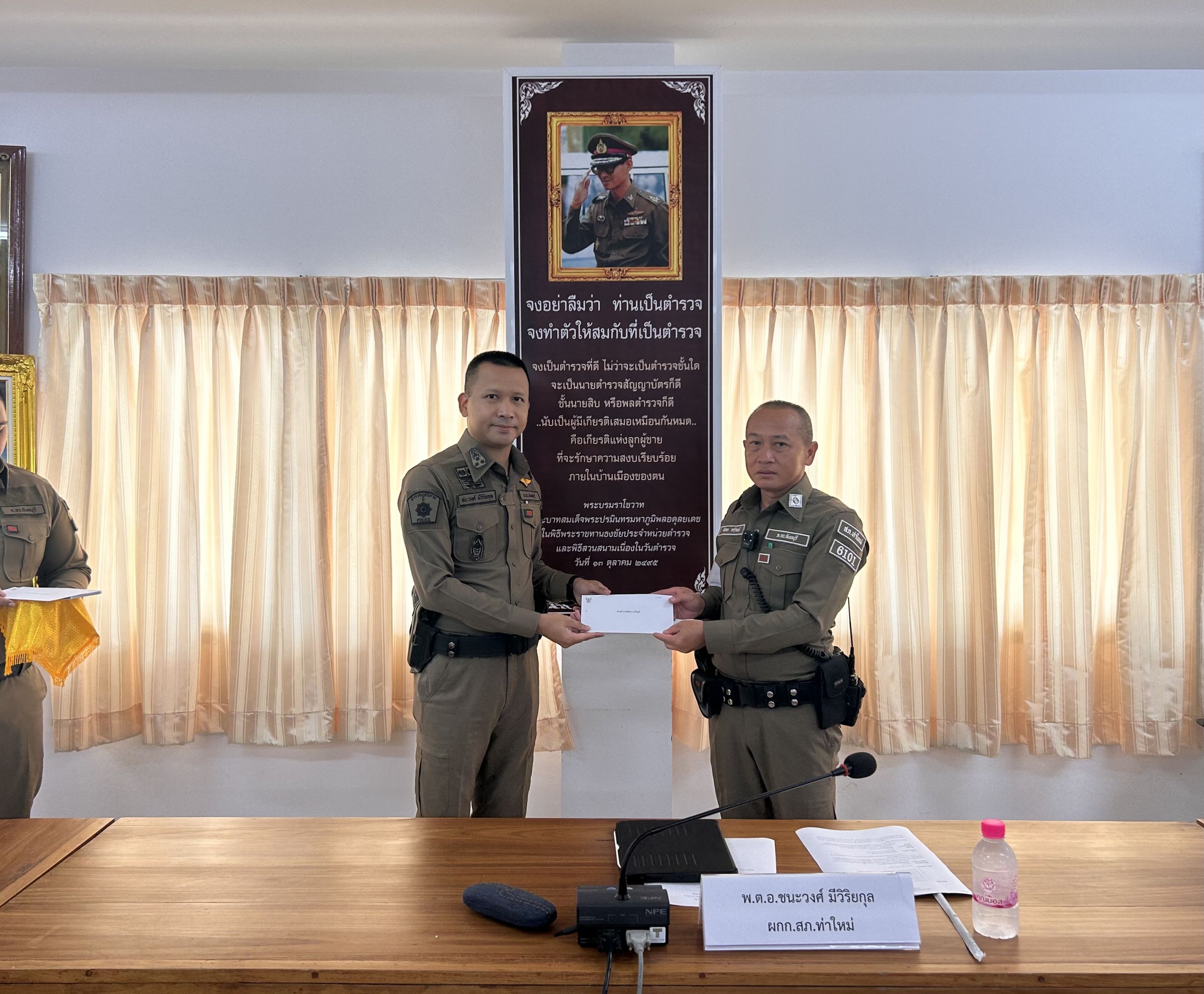 วันที่ 12 ก.ย.66 เวลา 10.00 น. พ.ต.อ.ชนะวงศ์ มีวิริยกุล ผกก.สภ.ท่าใหม่ ประชุมชี้แจงข้าราชการตำรวจในสังกัด เพื่อถ่ายทอดนโยบายของผู้บังคับบัญชา ณ ห้องประชุม สภ.ท่าใหม่ ทั้งนี้ ในคราวเดียวกันได้มอบทุนการศึกษาแก่บุตรข้าราชการตำรวจ และมอบรางวัลผู้มีผลการปฏิบัติจับกุมอาวุธปืนดีเด่น