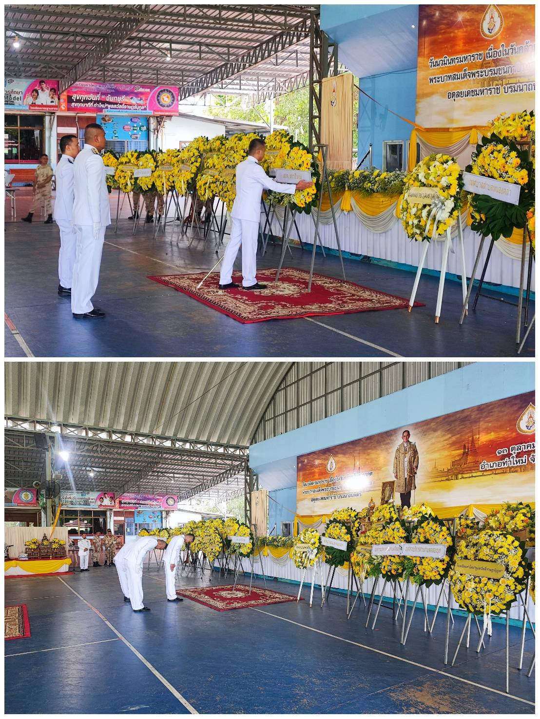 วันที่ 13 ต.ค.68 เวลา 08.00 น. พ.ต.อ.ชนะวงศ์ มีวิริยกุล ผกก.สภ.ท่าใหม่, พ.ต.ท.ประจักษ์พงษ์ ประดับ สวป.สภ.ท่าใหม่ และข้าราชการตำรวจ สภ.ท่าใหม่ เข้าร่วมกิจกรรมเนื่องในวันนวมินทรมหาราช เพื่อเป็นการน้อมรำลึกถึงพระมหากรุณาธิคุณ พระบาทสมเด็จพระบรมชนกาธิเบศร มหาภูมิพลอดุลยเดชมหาราช บรมนาถบพิตร กิจกรรมประกอบด้วย ตักบาตรถวายพระราชกุศลและพิธีวางพวงมาลา ณ อาคารอเนกประสงค์โรงเรียนท่าใหม่ "พูลสวัสดิ์ราษฎร์นุกูล" ต.ท่าใหม่ อ.ท่าใหม่ จว.จันทบุรี